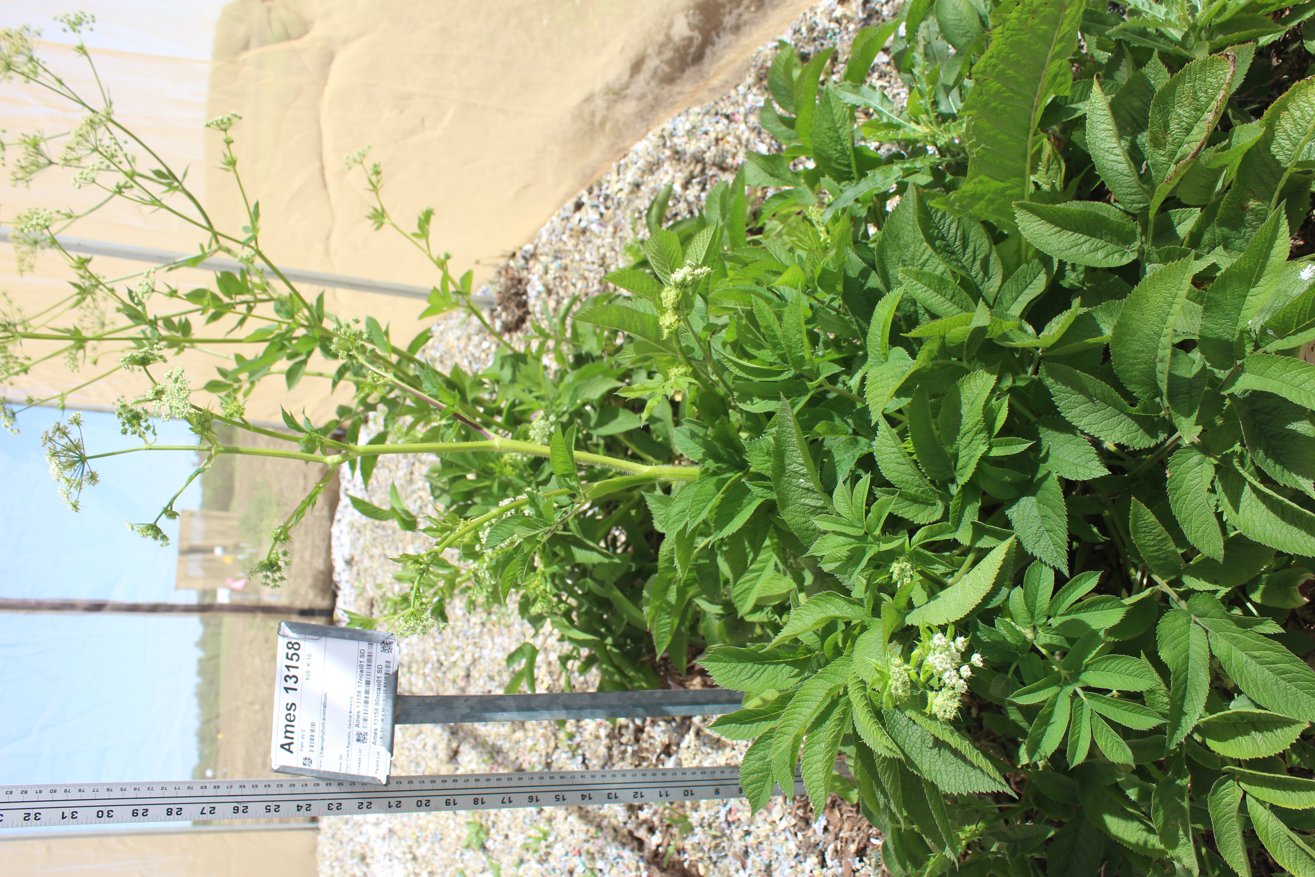 | The sample, Ames_13158_90ncao01_SD:NC7.INVENTORY.BRENNER, is sample of accession, Chaerophyllum aromaticum Czech Republic. |
